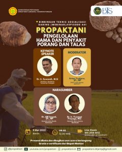 “Dengan cara ini, dampak negatif penggunaan pestisida terhadap kesehatan dan lingkungan dapat dikurangi. Untuk itu perlu digalakkan budidaya pertanaman bebas residu, terutama ditujukan terhadap kualitas hasil panen,” demikian dikatakan Suwandi dalam webinar Bimbingan Teknis dan Sosialisasi Propaktani Episode 441 yang bertajuk Pengelolaan Hama dan Penyakit Porang dan Talas, kemarin Senin (9/5/2022).