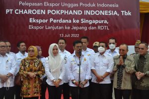 Charoen Pokphand melakukan pelepasan ekspor unggas produk Indonesia yang secara perdana dilakukan ke Singapura serta ekspor lanjutan ke Jepang dan Timor Leste di Jakarta, Rabu (13/07/2022). Pada saat ini, Charoen Pokphand telah mengekspor 50 ton daging ayam frozen dari target 100 ton ke Singapura pada tahun 2022, hal ini bisa dilakukan karena kebutuhan dalam negeri sudah tercukupi.